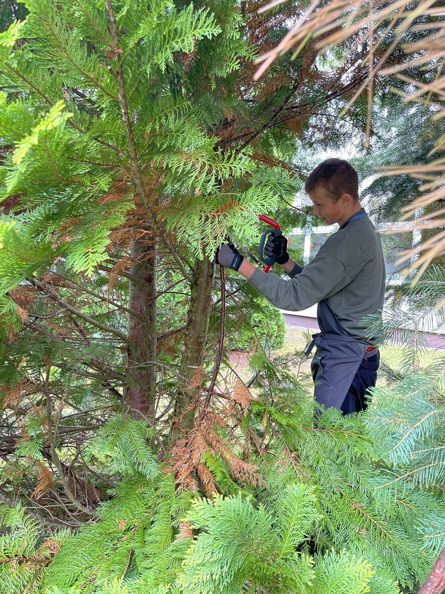 - Prace porządkowe- Nasi uczniowie z klas ósmych i czwartych wspólnie podjęli działania, aby teren wokół szkoły był bezpieczny i schludny, a przy okazji wsparli działania szkolnego wolontariatu. Przy użyciu narzędzi zakupionych w ramach programu Laboratoria Przyszłości dokonali przycinki gałęzi, które posłużą jako elelmenty dekoracyjne do stroików na kiermasz, w ramach pozyskania funduszy dla akcji "Szlachetna Paczka".